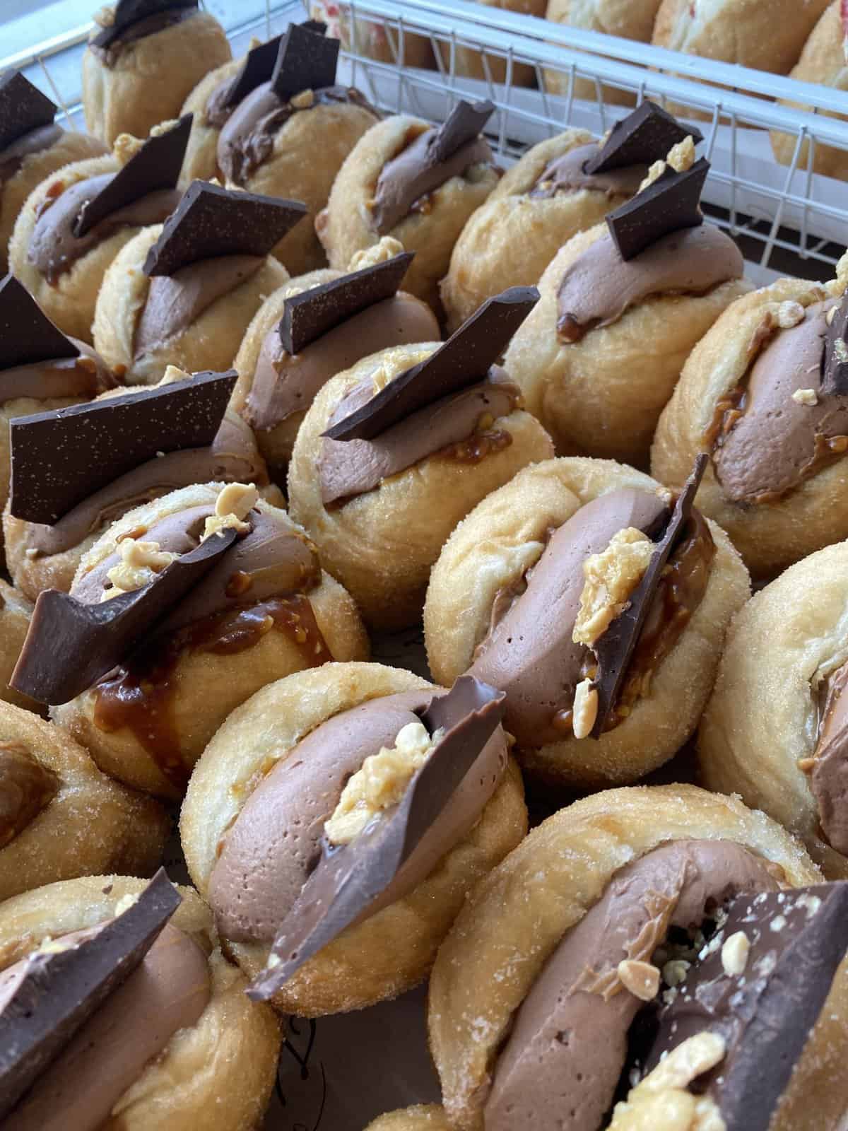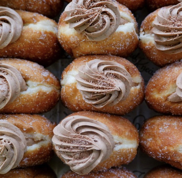 A pillowy donut filled with silky custard crème, then dipped in a glossy dark chocolate ganache. It’s the ultimate harmony of smooth, sweet, and indulgent—pure satisfaction in every bite.