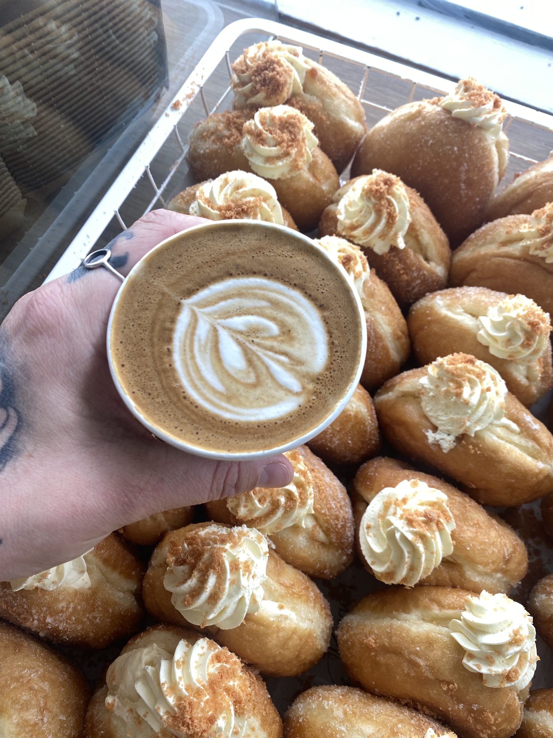 Dunked in our home made white chocolate ganache lased with Proof and Stocks golden rich, perfectly roasted coffee. drizzled with more white chocolate and finished with a couple of beans.