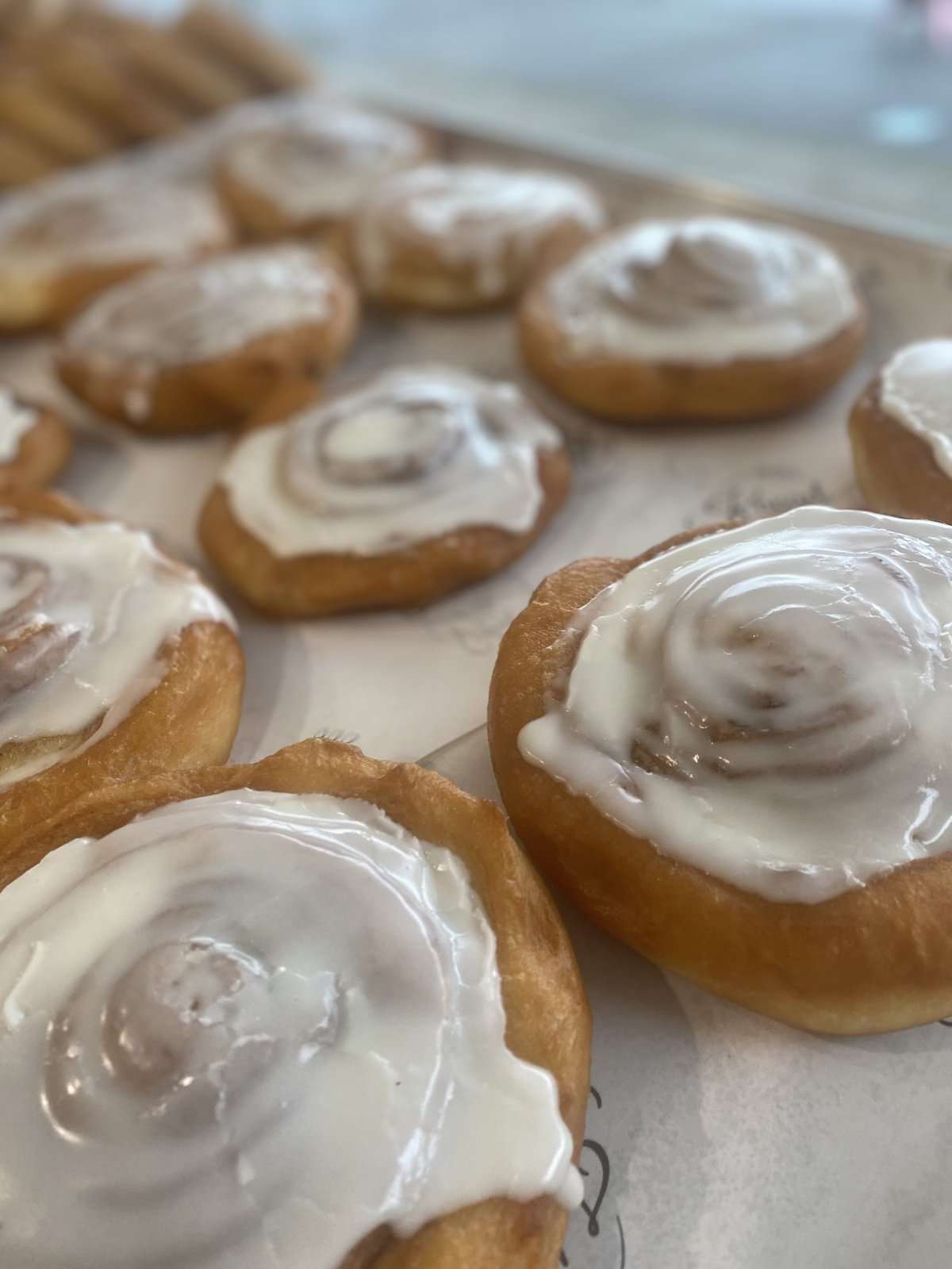A fluffy ring tossed in the perfect cinnamon to sugar ration coating.